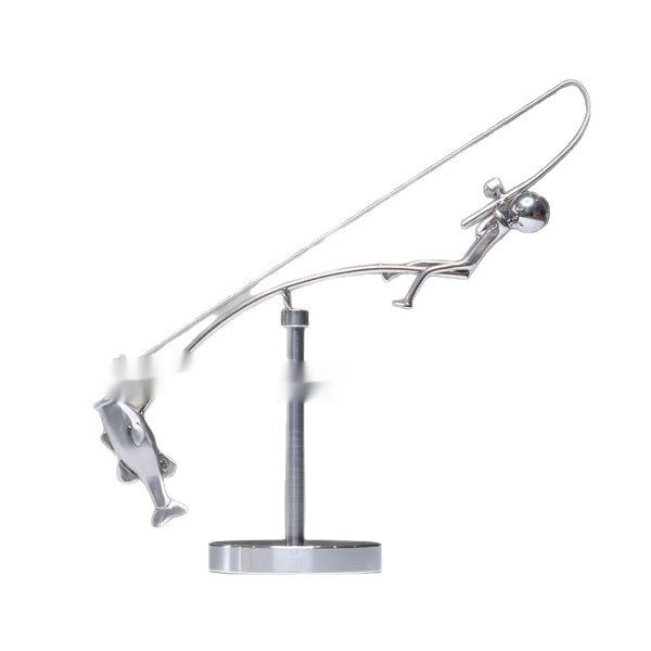 • Unique Kinetic Design: This sculpture features a metal fisherman figure balancing on a curved rod, with a dangling fish beneath — delivering a truly eye-catching motion and conversation piece.